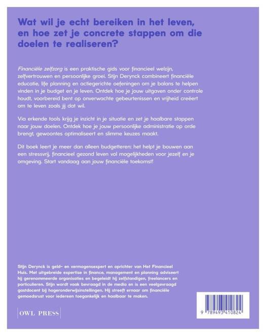 Financiële zelfzorg is een praktische gids voor financieel welzijn, zelfvertrouwen en persoonlijke groei. Stijn Derynck combineert financiële educatie, life planning en actiegerichte oefeningen om je balans te helpen vinden in je budget en je leven. Ontdek hoe je jouw uitgaven onder controle houdt, voorbereid bent op onverwachte gebeurtenissen en vrijheid creëert om te leven zoals jij dat wil. Via erkende tools krijg je inzicht in je situatie en zet je haalbare stappen naar jouw doelen. Ontdek hoe je jouw persoonlijke administratie op orde brengt, gewoontes optimaliseert en slimme keuzes maakt.