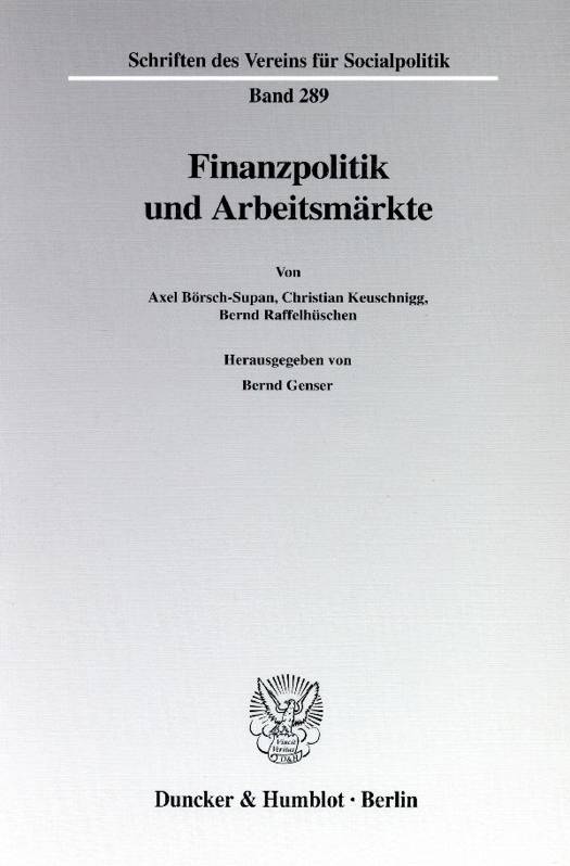 Der Finanzwissenschaftliche Ausschuss des Vereins für Socialpolitik hat in seiner Arbeitstagung 2001 die finanzpolitischen Ansatzpunkte zur Behebung von Arbeitsmarktproblemen diskutiert. Der Tagungsband enthält die drei Grundsatzreferate von Axel Börsch-Supan (Universität Mannheim), Christian Keuschnigg (Universität St. Gallen) und Bernd Raffelhüschen (Universität Freiburg).Axel Börsch-Supan weist darauf hin, dass die Bevölkerungsalterung neben der viel diskutierten Finanzlücke in der gesetzlichen Rentenversicherung in zwei weiteren Politikbereichen Handlungsbedarf einfordert. Da die bloße Erhöhung der Kapitalintensität nicht ausreichen wird, um die Arbeitsproduktivität so weit zu steigern, dass negative Auswirkungen der Alterung auf das Bruttoinlandsprodukt kompensiert werden können, muss die Akkumulation von Humankapital durch Aus- und Weiterbindung verstärkt werden. Außerdem wird die veränderte Altersstruktur auf die Zusammensetzung der aggregierten Güternachfrage durchschlagen und eine deutlich höhere sektorale Faktormobilität verlangen, um sektorale Beschäftigungskrisen zu vermeiden.Christian Keuschnigg erklärt in einem intertemporalen Gleichgewichtsmodell das Auftreten von Kreditrationierung und Arbeitslosigkeit als Folge von Suchfriktionen auf Kapital- und Arbeitsmärkten. Finanzpolitische Maßnahmen zur Förderung von Unternehmensgründungen stellen sich dabei als ein wirksames Instrument zur Bekämpfung von Arbeitslosigkeit heraus.Bernd Raffelhüschen weist darauf hin, dass die sozialpolitische Reformagenda zur Renten- und Krankenversicherung erweitert werden muss, weil auch die Grundsicherung durch Sozialhilfe, Wohngeld, Arbeitslosenhilfe und Pflegegeld reformbedürftig ist. Er entwickelt eine Blaupause für eine Grundsicherungsreform, die auf zwei Kerngedanken basiert: subsidiäre Hilfe zur Selbsthilfe und Subvention von Beschäftigung anstatt Untätigkeit. Verwandte Reformkonzepte im internationalen Vergleich und bestehende Anknüpfungspunkte im deutschen Sozialrechtssystem stimmen Raffelhüschen optimistisch, dass sein Reformvorschlag nicht nur ökonomisch attraktiv, sondern auch juristisch umsetzbar und politisch mehrheitsfähig ist.