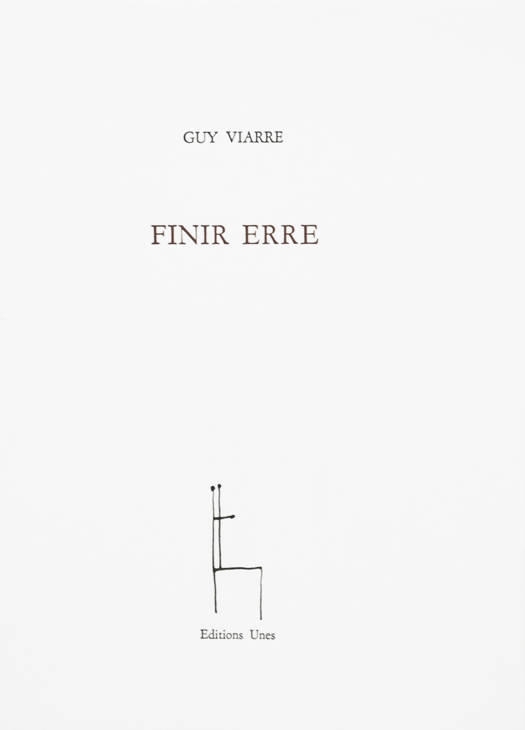 Finir erre est un livre de la séparation, un morceau brûlé dans la paume de la main. On peut écrire la souffrance, mais sans pouvoir la mettre à l’écart. Les mots n’écartent pas assez, il y a une scission, une fragmentation continue et cette difficulté de tenir ensemble en soi. Un visage de mort nous regarde, qu’on ne peut quitter des yeux, une mâchoire de sexe et d’enfance. Une mâchoire d’enfantement. Peut-on mourir tous les jours ? Guy Viarre nous écrit, mais de quel côté de la mort ? Comme s’il avait ouvert un passage, et qu’il écrivait de tous les côtés de la mort. Parce qu’elle tient tout entière dans le corps de l’existence. Depuis ce passage qu’il emprunte seul, Viarre jette sa lumière dans ce livre où la « solitude s’ajoute à rien ».