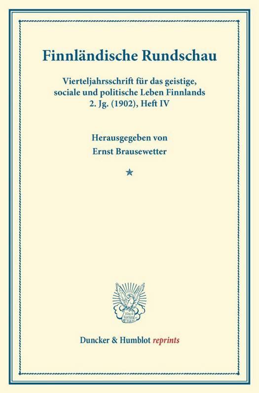 Vierteljahrsschrift Fur Das Geistige, Sociale Und Politische Leben Finnlands. 2. Jg. (192), Heft IV (S. 241-344). Mit Einem Alphabetischen Register Uber Den 1.-2. Jahrgang. Unter Mitwirk. In- U. Ausland. Gelehrt. U. Schriftst. Hrsg. V. E. Brausewette