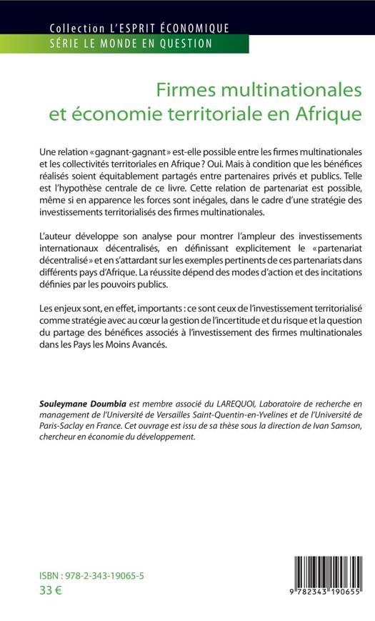 Une relation « gagnant-gagnant » est-elle possible entre les firmes multinationales et les collectivités territoriales en Afrique ? Oui. Mais à condition que les bénéfices réalisés soient équitablement partagés entre partenaires privés et publics. Telle est l'hypothèse centrale de ce livre. L'auteur développe son analyse pour montrer l'ampleur des investissements internationaux décentralisés, en définissant explicitement le « partenariat décentralisé » et en s'attardant sur les exemples pertinents de ces partenariats dans différents pays d'Afrique. La réussite dépend des modes d'action et des incitations définies par les pouvoirs publics.