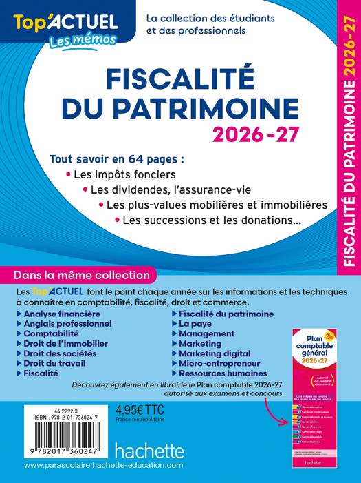 Depuis 15 ans, les Top'Actuel sont mis à jour chaque année et donnent les informations et les techniques à connaitre en comptabilité, fiscalité, droit et commerce. Ils s'adressent aux étudiants (école de commerce, université, BTS, IUT, DCG...), personnes en formation continue et aux professionnels.