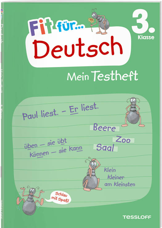 Hier testen die Kinder ihr Wissen im Schulfach Deutsch 3. Klasse, spezifisch in Rechtschreibung und Grammatik. Die relevanten Themen sind als Tests in steigender Schwierigkeitsstufe aufbereitet. Die Tests entsprechen dem Anspruch des Lehrplans und sind im Stil gängiger Klassenarbeit konzipiert. Die Punkte werden mit dem Notenschlüssel verteilt, sodass die eigene Note genau ermittelt werden kann. Die typischen Fit-Ameisencharaktere lockern und muntern zusätzlich mit motivierenden Sprüchen im Heft verteilt auf.