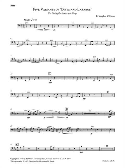 for string orchestra and harp (2 if possible)Here the composer presents five variants on the English folk song Dives and Lazarus that are, in his own words, not exact replicas of traditional tunes but rather reminiscences of various versions.