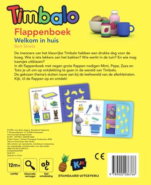 De inwoners van het kleurrijke Timbalo hebben een drukke dag voor de boeg. Wie is iets lekkers aan het bakken? Wie werkt in de tuin? En wie mag kaarsjes uitblazen? In dit flappenboek met negen grote flappen nodigen Mimi, Pepe, Zaza en Toto je uit om op ontdekking te gaan in de wereld van Timbalo. De gekozen thema’s sluiten nauw aan bij de leefwereld van de allerkleinsten.Kijk, til de flappen op en ontdek!