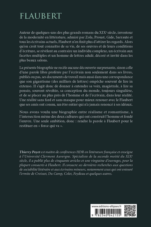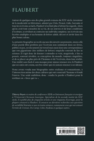 La présente biographie ne recèle aucune découverte surprenante, sinon celle d’une parole libre proférée par l’écrivain non seulement dans ses livres, publiés ou pas, ses documents de travail mais aussi dans une correspondance que son gigantisme (des milliers de lettres) empêche souvent de lire in extenso. Il s’agit donc de donner à entendre sa voix, magistrale, à lire sa pensée, souvent révoltée, sa conception du monde, toujours singulière, et de se placer au plus près de l’homme et de l’écrivain, au plus près de sa réalité. Une réalité sans fard et sans masque pour mieux renouer avec le Flaubert que ses amis ont connu, un être entier qui n’a jamais renoncé à ses idéaux.