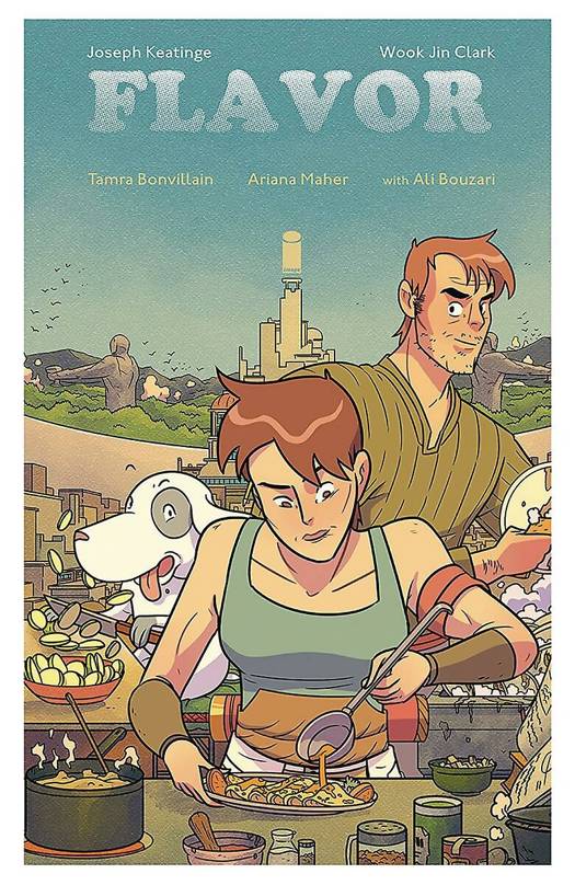 Image Comics' most delicious Young Adult Culinary Fantasy is served up in a collected edition! Within a strange walled city, an unlicensed chef discovers a mystery that threatens to end it all. Join JOSEPH KEATINGE (GLORY, SHUTTER) and WOOK JIN CLARK (Adventure Time: The Flip Side) on this culinary epic adventure--FLAVOR--where chefs are the ultimate celebrity and food is the most valued commodity. The high-stakes competition of Hunger Games collides with the lush, MIYAZAKI-esque worldbuilding in this delectable new ongoing series featuring culinary consulting and an introduction by ALI BOUZARI, renowned food scientist and author of the IACP Award-winning cookbook Ingredient: Unveiling the Essential Elements of Food. Perfect for readers of BONE and LUMBERJANES, but with way more crepes and the world's cutest dog!