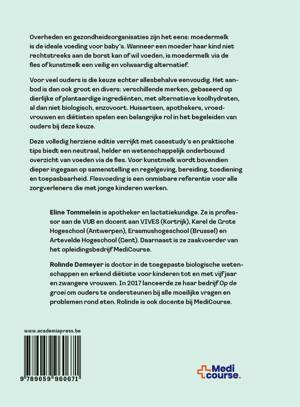 Overheden en gezondheidsorganisaties zijn het eens: moedermelk is de ideale voeding voor baby's. Wanneer een moeder haar kind niet rechtstreeks aan de borst kan of wil voeden, is moedermelk via de fles of kunstmelk een veilig en volwaardig alternatief. Voor veel ouders is die keuze echter allesbehalve eenvoudig. Het aanbod is dan ook groot en divers: verschillende merken, gebaseerd op dierlijke of plantaardige ingrediënten, met alternatieve koolhydraten, al dan niet biologisch, enzovoort. Huisartsen, apothekers, vroedvrouwen en diëtisten spelen een belangrijke rol in het begeleiden van ouders bij deze keuze. Deze volledig herziene editie verrijkt met casestudy's en praktische tips biedt een neutraal, helder en wetenschappelijk onderbouwd overzicht van voeden via de fles. Voor kunstmelk wordt bovendien dieper ingegaan op samenstelling en regelgeving, bereiding, toediening en toepasbaarheid. Flesvoeding is een onmisbare referentie voor alle zorgverleners die met jonge kinderen werken.
