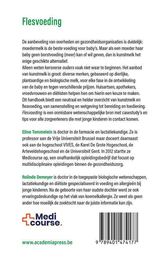 Dit handboek biedt een neutraal en helder overzicht van kunstmelk en flesvoeding, van samenstelling en wetgeving tot bereiding en toediening. Flesvoeding is een onmisbare wetenschappelijke bron met casestudy's en tips voor alle zorgverleners die met jonge kinderen in contact komen.
