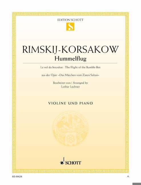 Flight of the Bumble Bee from the opera 'The Legend of Tsar Saltan' based on a text by Pushkin is, without doubt, the best-known work in the oeuvre of Nikolai Rimsky-Korsakov (1844-1906). The musical droning of the bumble bee has wedged its way into the concert halls and radio stations in different arrangements and interpretations. Lothar Lechner presents an arrangement for violin and piano. Instrumentation: violin and piano