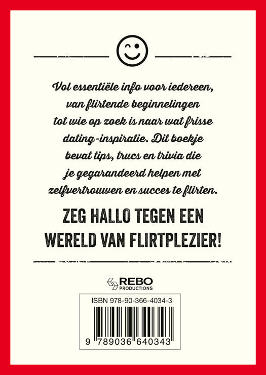 Vol essentiële info voor iedereen, van flirtende beginnelingen tot wie op zoek is naar wat frisse dating-inspiratie. Dit boekje bevat tips, trucs en trivia die je gegarandeerd helpen met zelfvertrouwen en succes te flirten. Zeg hallo tegen een wereld van flirtplezier!