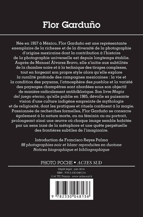 Née en 1957 à México, Flor Garduño, dont les maîtres sont Kati Horna et Manuel Álvarez Bravo, est une représentante exemplaire de la richesse de la photographie d'origine mexicaine. Après des travaux dévoilant sa puissante vision de la culture indigène, de ses pratiques et de ses rituels, Flor Garduño poursuit de nouvelles recherches formelles et se tourne alors vers la nature morte, l'étude du nu féminin et une approche plus intimiste de la photographie. Elle prolonge ainsi une oeuvre qui révèle une dimension poétique exceptionnelle.
