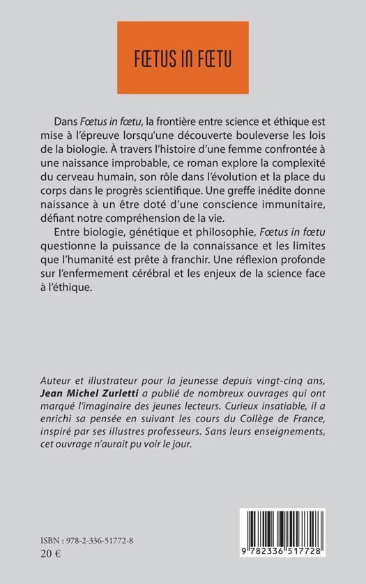 Dans Foetus in foetu, la frontière entre science et éthique est mise à l'épreuve lorsqu'une découverte bouleverse les lois de la biologie. À travers l'histoire d'une femme confrontée à une naissance improbable, ce roman explore la complexité du cerveau humain, son rôle dans l'évolution et la place du corps dans le progrès scientifique. Une greffe inédite donne naissance à un être doté d'une conscience immunitaire, défiant notre compréhension de la vie. Entre biologie, génétique et philosophie, Foetus in foetu questionne la puissance de la connaissance et les limites que l'humanité est prête à franchir. Une réflexion profonde sur l'enfermement cérébral et les enjeux de la science face à l'éthique.
