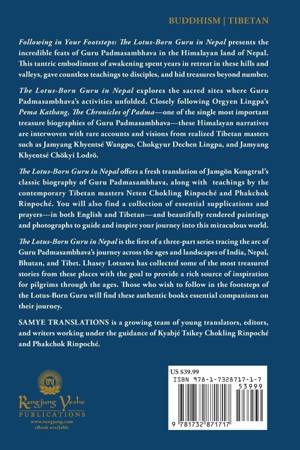 The Lotus-Born Guru in Nepal offers a fresh translation of Jamgön Kongtrul's classic biography of Guru Padmasambhava, along with teachings by the contemporary Tibetan masters Neten Chokling Rinpoché and Phakchok Rinpoché. You will also find a collection of essential supplications and prayers--in both English and Tibetan--and beautifully rendered paintings and photographs to guide and inspire your journey into this miraculous world.