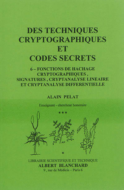 Le premier chapitre du présent ouvrage est consacré à l'étude des fonctions de hachage cryptographiques (empreintes, fonctions de hachage cryptographiques itérées, codes d'authentification de messages). Les signatures numériques et fonctions de hachage cryptographiques sont étudiées dans ie second chapitre. La cryptanalyse linéaire fait l'objet du troisième chapitre. Sont présentées, en particulier, les approximations linéaires de substitutions ou permutations omégas , la table dite d'approximation linéaire et la cryptanalyse linéaire d'un réseau de substitution - permutation. La cryptanalyse différentielle est étudiée dans le quatrième chapitre. Le chiffrement à la volée fait l'objet du cinquième et dernier chapitre du présent ouvrage. Les registres à décalage, qui sont les circuits numériques de base utilisés dans un générateur de suite pseudo aléatoire d'éléments binaires, sont étudiés de façon détaillée.