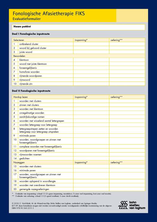 Evaluatie: met het evaluatieformulier volg je de ontwikkeling van de patient.
