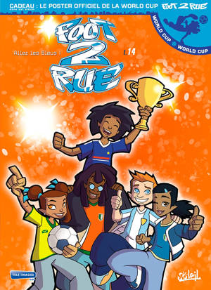 POUR TAG ET SES AMIS, DIRECTION L'AFRIQUE DU SUD OÙ SE DÉROULE LA COUPE DU MONDE DE FOOTBALL !POSTER OFFICIEL DE LA WORLD CUP FOOT 2 RUE OFFERT * Extraordinaire ! Les Bleus sont invités par Fédé afin de participer à un match d'exhibition de Foot de rue...À Johannesburg, en Afrique du Sud, pendant la vraie coupe du monde de football ! Quelle occasion de vivre cette compétition au coeur de l'événement et de découvrir la culture africaine ! Mais un tel engouement attire aussi de mauvaises intentions... Les Bleus devront affronter les terribles Hyènes du Bitume pour tenter de sauver le Mondial ! Un défi par lequel ils devront se montrer à la hauteur !*Edition limitée, chez les libraires participants à l'opération, dans la limite des stocks disponibles.