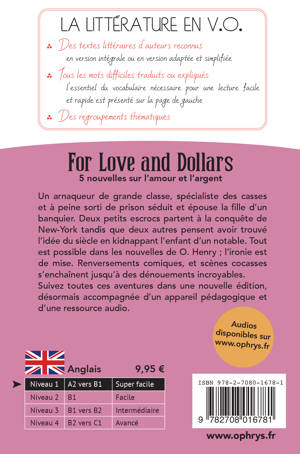 Un arnaqueur de grande classe, spécialiste des casses, à peine sorti de prison, séduit et épouse la fille d’un banquier. Deux petits escrocs venus du Sud profond des États-Unis partent à la conquête de New-York, tandis que deux autres pensent avoir trouvé l’idée du siècle en kidnappant l’enfant d’un notable. Tout est possible dans les nouvelles de O. Henry. L’ironie est de mise. Renversements comiques et scènes cocasses s’enchaînent, jusqu’à des dénouements incroyables. Suivez toutes ces aventures dans une nouvelle édition, désormais accompagnée d’un appareil pédagogique et d’une ressource audio.