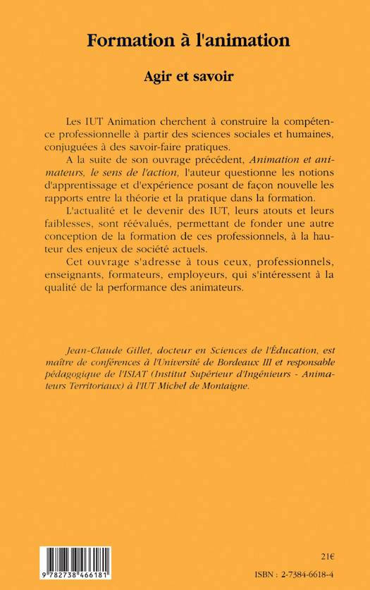 Les IUT Animation cherchent à construire la compétence professionnelle à partir des sciences sociales et humaines, conjuguées à des savoir-faire pratiques. L'auteur questionne les notions d'apprentissage et d'expérience posant de façon nouvelle les rapports entre la théorie et la pratique dans la formation.