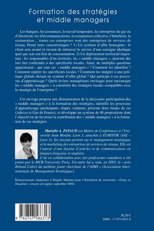 Qu'est-ce qu'un "middle managers" ou un manager de terrain ? Comment les identifier, repérer les spécificités locales ? comment les intégrer à une politique globale de l'entreprise ? Quels leviers managériaux envisager pour les encourager à construire des stratégies locales compatibles avec la stratégie générale de l'entreprise ? Cet ouvrage propose une démonstration de la nécessaire participation des "middle managers" à la formation des stratégies d'entreprises notamment les entreprises de service et de réseau.