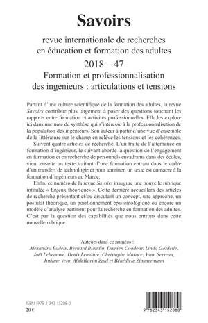 Partant d'une culture scientifique de la formation des adultes, la revue Savoirs contribue plus largement à poser des questions touchant les rapports entre formation et activités professionnelles. Elle les explore ici dans une note de synthèse qui s'intéresse à la professionnalisation de la population des ingénieurs. Son auteur à partir d'une vue d'ensemble de la littérature sur le champ en relève les tensions et les cohérences.