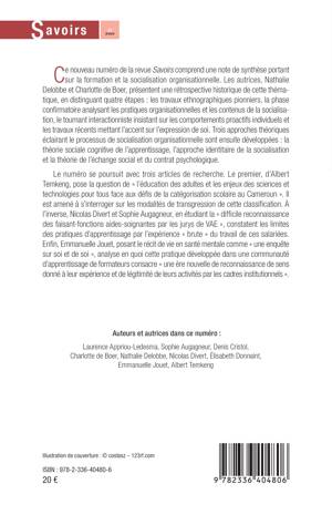 Ce nouveau numéro de la revue Savoirs comprend une note de synthèse portant sur la formation et la socialisation organisationnelle. Les autrices, Nathalie Delobbe et Charlotte de Boer, présentent une rétrospective historique de cette thématique, en distinguant quatre étapes : les travaux ethnographiques pionniers, la phase confirmatoire analysant les pratiques organisationnelles et les contenus de la socialisation, le tournant interactionniste insistant sur les comportements proactifs individuels et les travaux récents mettant l’accent sur l’expression de soi. Trois approches théoriques éclairant le processus de socialisation organisationnelle sont ensuite développées : la théorie sociale cognitive de l’apprentissage, l’approche identitaire de la socialisation et la théorie de l’échange social et du contrat psychologique. Le numéro se poursuit avec trois articles de recherche. Le premier, d’Albert Temkeng, pose la question de « l’éducation des adultes et les enjeux des sciences et technologies pour tous face aux défis de la catégorisation scolaire au Cameroun ». Il est amené à s’interroger sur les modalités de transgression de cette classification. À l’inverse, Nicolas Divert et Sophie Augagneur, en étudiant la « difficile reconnaissance des faisant-fonctions aides-soignantes par les jurys de VAE », constatent les limites des pratiques d’apprentissage par l’expérience « brute » du travail de ces salariées. Enfin, Emmanuelle Jouet, posant le récit de vie en santé mentale comme « une enquête sur soi et de soi », analyse en quoi cette pratique développée dans une communauté d’apprentissage de formateurs consacre « une ère nouvelle de reconnaissance de sens donné à leur expérience et de légitimité de leurs activités par les cadres institutionnels ».