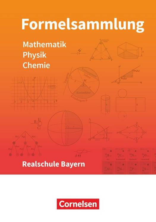 Die Formelsammlung umfasst alle Schwerpunktthemen des LehrplanPLUS und ist für den Gebrauch an Realschulen in Bayern für die Fächer Mathematik, Physik und Chemie zugelassen. Sie enthält die wichtigsten mathematischen Definitionen und Formeln aus den Bereichen Algebra, Funktionen, Geometrie und Wahrscheinlichkeiten sowie alle wesentlichen physikalischen Größen mit Einheiten und Formeln.