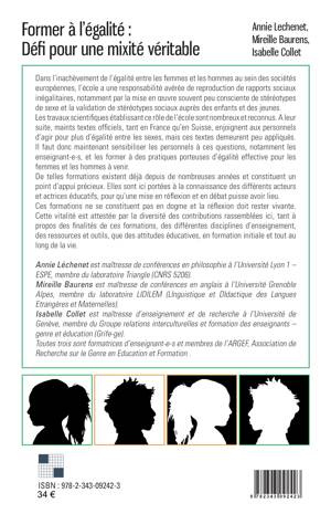 Ce recueil rassemble des présentations et analyses de formations permettant aux enseignant-e-s d’agir pour plus d’égalité effective pour les futur-e-s femmes et les hommes. La diversité des contributions, tant à propos des finalités de ces formations, des différentes disciplines d’enseignement, des ressources et outils, que des attitudes éducatives, en formation initiale et tout au long de la vie, atteste de la vitalité de la réflexion et de l’ouverture du débat.