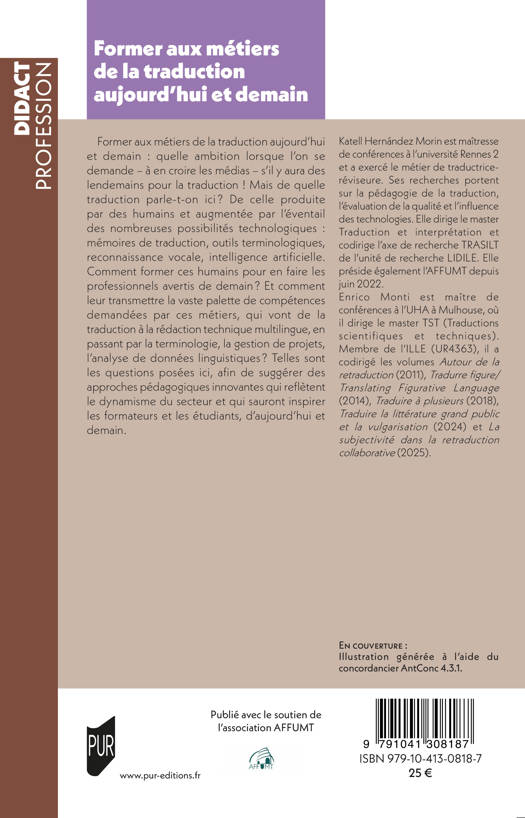 Former aux métiers de la traduction aujourd’hui et demain : quelle ambition lorsque l’on se demande – à en croire les médias – s’il y aura des lendemains pour la traduction ! Mais de quelle traduction parle-t-on ici ? De celle produite par des humains et augmentée par l’éventail des nombreuses possibilités technologiques : mémoires de traduction, outils terminologiques, reconnaissance vocale, intelligence artificielle. Comment former ces humains pour en faire les professionnels avertis de demain ? Et comment leur transmettre la vaste palette de compétences demandées par ces métiers, qui vont de la traduction à la rédaction technique multilingue, en passant par la terminologie, la gestion de projets, l’analyse de données linguistiques ? Telles sont les questions posées ici, afin de suggérer des approches pédagogiques innovantes qui reflètent le dynamisme du secteur et qui sauront inspirer les formateurs et les étudiants, d’aujourd’hui et demain.