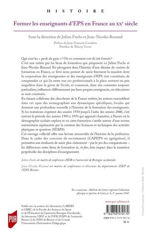 Cet ouvrage collectif offre une lecture renouvelée de l'histoire de la profession. Dans le cadre des concours de recrutement (CAPEPS ou agrégation), il permettra aux étudiants de saisir plus clairement - par le jeu des comparaisons - les différences entre fieux de formation et, in fine, leur impact dans la mutation perpétuelle des disciplines d'enseignement.