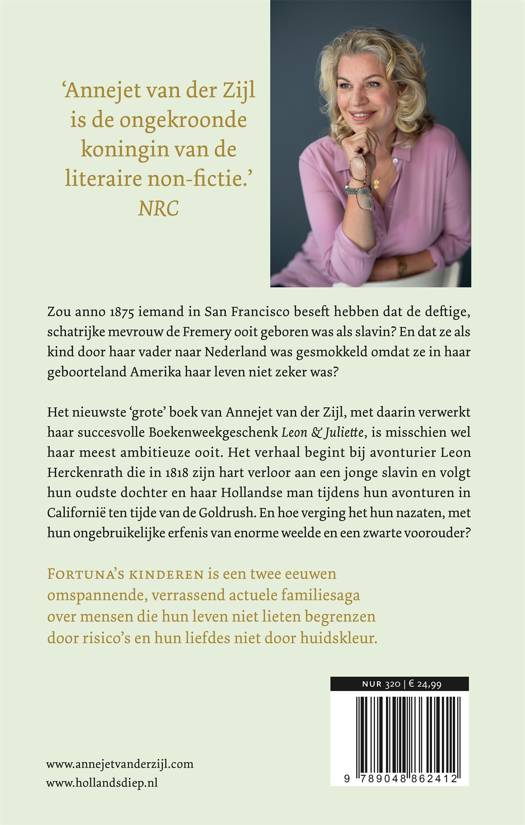 Fortuna's kinderen is een twee eeuwen omspannende, verrassend actuele familiesaga over mensen die hun leven niet lieten begrenzen door risico's en hun liefdes niet door huidskleur.