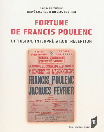 La musique de Francis Poulenc n'a pas connu de purgatoire et s'est affirmée comme l'une des plus appréciées du XXe siècle. Ce livre cherche à comprendre son succès et son devenir (sa fortune) en France et à l'étranger. Sont évoqués les réseaux professionnels et amicaux, les institutions, la presse, les interprètes grâce auxquels les oeuvres circulent. Mais aussi les conditions d'exécution ou de représentation des oeuvres du musicien, les cadres esthétiques de leur réception, et toute forme de témoignage permettant de rendre compte de leur programmation, de leur diffusion et de leur perception.