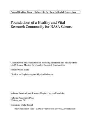 At the request of NASA, this report examines the foundation for healthy and vital research communities. Foundations of a Healthy and Vital Research Community for NASA Science identifies the characteristics of a healthy and vital research community, defines implementable measures for assessing the health and vitality of a research community, describes the types of data that NASA should be collecting to enable future assessments of the health and vitality of the scientific work force, and recommends best practices to improve the health and vitality of NASA's research communities.