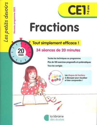 29 séances progressives de 20 minutes pour travailler efficacement. Chaque séance commence par une leçon, puis des exercices d'application sont proposés, et leur corrigé est disponible en fin de cahier. L'enfant est accompagné et monte en compétence au fur et à mesure, il pourra ainsi maîtriser les fractions et les nombres décimaux, apprendre à les ajouter, à les soustraire et à les multiplier.