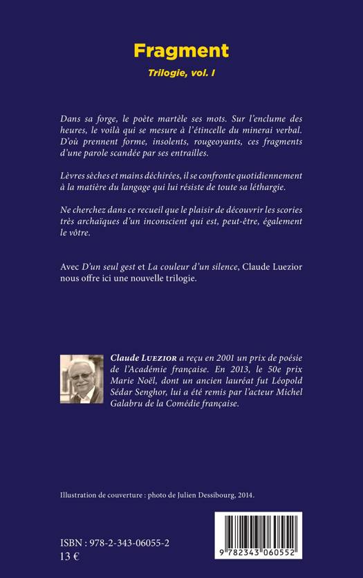 Dans sa forge le poète martèle ses mots. Sur l'enclume des heures, le voilà qui se mesure à l'étincelle du minerai verbal. D'où prennent forme, insolents, rougeoyants, ces fragments d'une parole scandée par ses entrailles. Avec D'un seul geste et La couleur d'un silence, Claude Luezior nous offre ici une nouvelle trilogie.