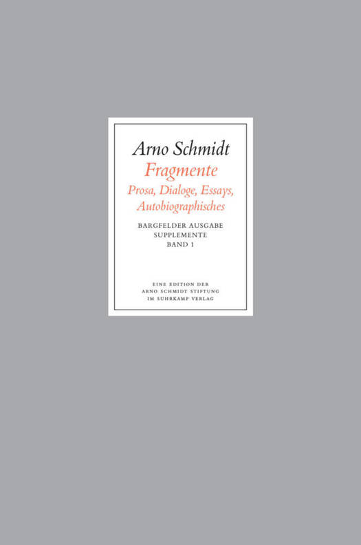 Der erste Ergänzungsband zur Bargfelder Ausgabe versammelt die Fragmente aus dem Nachlaß Arno Schmidts. Unabgeschlossenes und Ideenskizzen, teils mit zugehörigem Zettelmaterial, machen den Hauptteil dieses Bandes aus; aber auch erst kurz vor der letzten überarbeitung abgebrochene Texte wie der Radiodialog über Ludvig Holberg oder der Essay über Karl Philipp Moritz werden hier erstmals veröffentlicht.