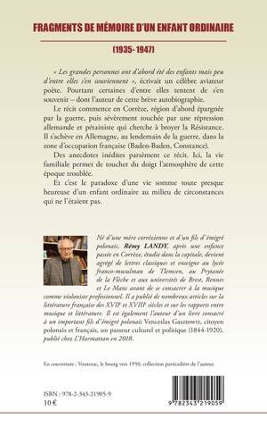 Fragments de mémoire d'un enfant ordinaire
