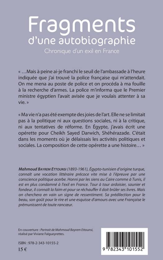 Mahmoud Bayrem Ettounsi (1893-1961), Egypto-tunisien d'origine turque, connaît une vocation littéraire précoce viet mise à l'épreuve par une conscience politique acerbe. Honni par les siens au Caire comme à Tunis, il est en plus condamné à l'exil en France. Mais il souligne : "Ma vie n'a pas été exempte des joies de l'art. Elle ne se limitait pas à la politique ni aux questions sociales, ni à la critique, ni aux tentatives de réforme. En Egypte, j'avais écrit une opérette pour Cheikh Sayed Darwich, Shéhérazade. C'était dans les moments où je délaissais les activités politiques et sociales. La composition de cette opérette a une histoire..."