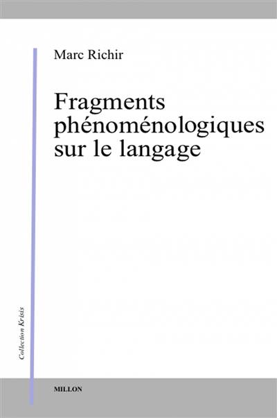 Ces fragments phénoménologiques sur le langage font suite aux Fragments phénoménologiques sur le temps et l'espace déjà publiés dans la même collection. « Fragments » en raison de l'inachèvement de principe de la « chose » elle-même, de l'impossibilité d'en traiter sous la forme d'un système, dans la discursivité mettant en ordre successif tous ses aspects, en raison aussi de la précarité et des incertitudes qui ne cessent de surgir quant à la pertinence, à ce registre, de la langue philosophique que parle encore la phénoménologie.