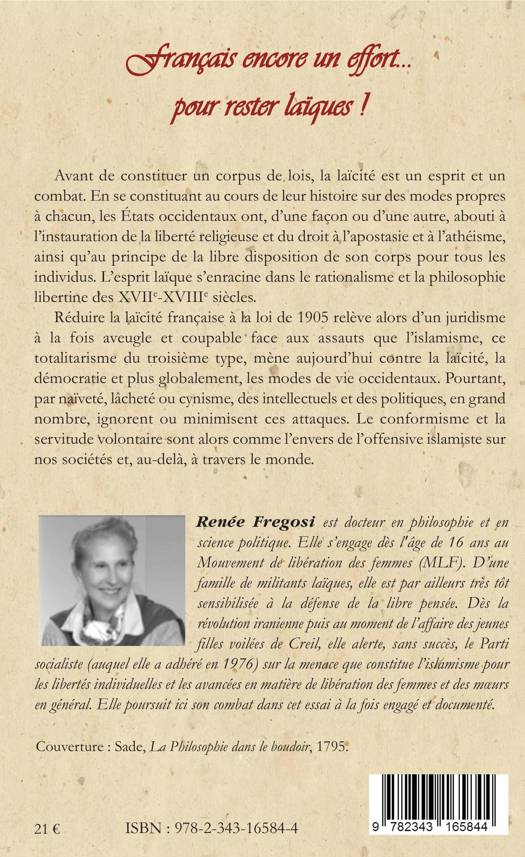 Avant de constituer un corpus de lois, la laïcité est un esprit et un combat. En se constituant au cours de leur histoire sur des modes propres à chacun, les Etats occidentaux ont abouti à la liberté religieuse et au droit à l'apostasie et à l'athéisme, ainsi qu'au principe de la libre disposition de son corps par tous les individus. L'esprit laïque s'enracine dans le rationalisme et la philosophie libertine des XVIIe-XVIIIe siècles. Réduire la laïcité française à la loi de 1905 relève alors d'un juridisme aveugle et coupable face aux assauts de l'islamisme. Pourtant, des intellectuels et des politiques ignorent ou minimisent ces attaques. Conformisme et servitude volontaire sont alors comme l'envers de l'offensive islamiste sur nos sociétés.
