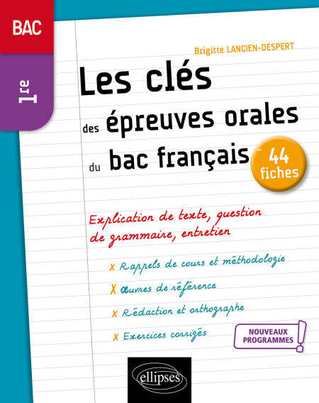 Cet ouvrage permet aux élèves de Première de s’approprier de façon autonome, concrète et directement utilisable les connaissances et les compétences attendues pour les épreuves orales anticipées de français au Bac :