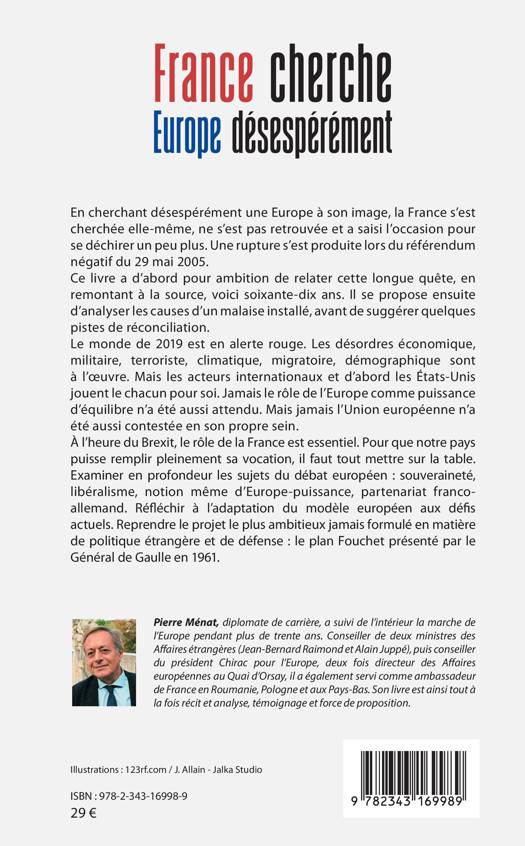 En cherchant désespérément une Europe à son image, la France s'est cherchée elle-même, ne s'est pas retrouvée et a saisi l'occasion pour se déchirer un peu plus. Une rupture s'est produite lors du référendum du 29 mai 2005. Ce livre a d'abord pour ambition de relater cette longue quête, et se propose ensuite d'analyser les causes du malaise avant de suggérer des pistes de réconciliation. Le monde de 2019 est en alerte rouge et jamais le rôle de l'Europe comme puissance d'équilibre n'a été aussi attendu. C'est pourquoi il faut réfléchir à l'adaptation du modèle européen aux défis actuels et envisager de reprendre le plan Fouchet présenté par de Gaulle.