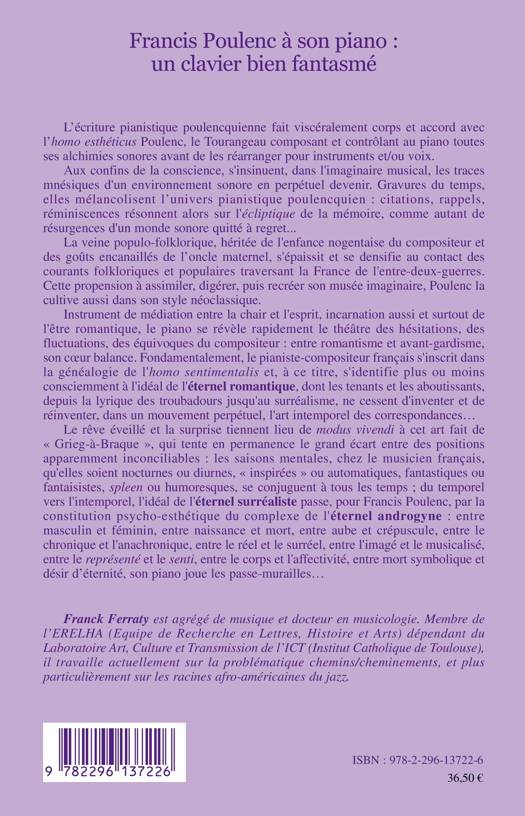 L'écriture pianistique poulencquienne fait viscéralement corps et accord avec l'homo estheticus Poulenc, le Tourangeau composant et contrôlant au piano toutes ses alchimies sonores avant de les réarranger pour instruments et/ou voix. Instrument de médiation entre la chair et l'esprit, incarnation de l'être romantique, le piano se révèle rapidement le théâtre des hésitations, des fluctuations, des équivoques du compositeur : entre romantisme et avant-gardisme son cur balance.