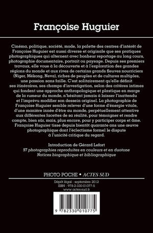 La riche diversité de l'oeuvre de Françoise Huguier s'explique peut-être par son refus de choisir entre les différentes facettes du médium photographique. Elle s'intéresse à la mode - on sait sa longue complicité avec le couturier Christian Lacroix - mais la traite de façon décalé ; elle parcourt en profondeur l'Afrique et décide d'en faire connaître les grands photographes ; le photoreportage, qu'elle pratique à travers une longue collaboration avec «Libération», la requiert autant qu'une forme d'investigation anthropologique dans laquelle elle excelle.