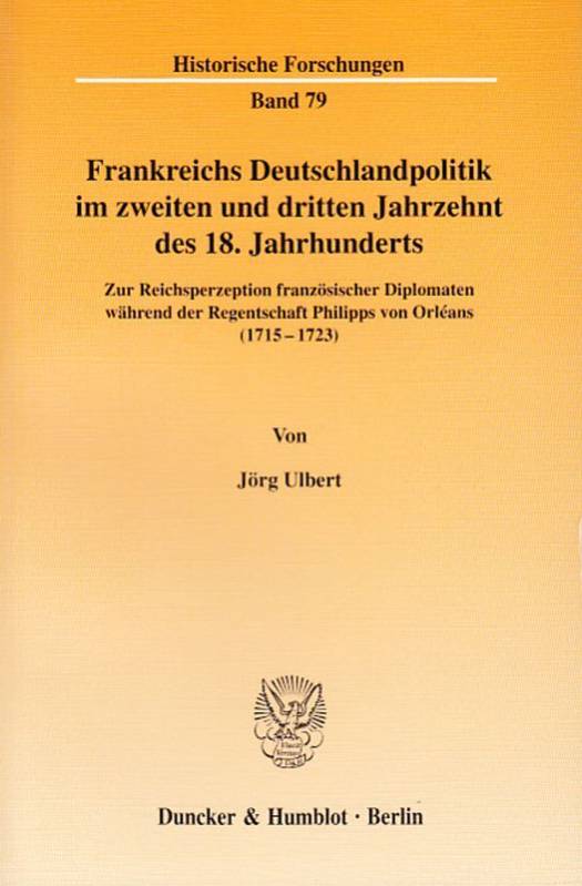 Anhand der französischen Deutschlandpolitik während der Regentschaft Philipps von Orléans (1715-1723), welche nach Ende des Spanischen Erbfolgekriegs und dem Tode Ludwigs XIV. einen sachlichen wie personellen Neubeginn in der französischen Außenpolitik mit sich brachte, wird hier beispielhaft untersucht, welche Informationen von den Entscheidungsträgern angefordert wurden. Jörg Ulbert erörtert weiterhin, wie und von wem sie zusammengetragen, wie sie danach interpretiert, wie sie zur Kenntnis genommen wurden, das herrschende Bild des Reichs und der Deutschen beeinflußten und inwiefern sie sich gegebenenfalls in politischen Entscheidungen niederschlugen.
