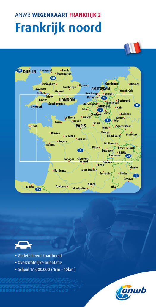 Met de gedetailleerde en nauwkeurige ANWB Wegenkaart Frankrijk 2. Frankrijk noord ga je goed voorbereid op autovakantie. Schaal van 1:1.000.000 (1 cm = 10 km).
