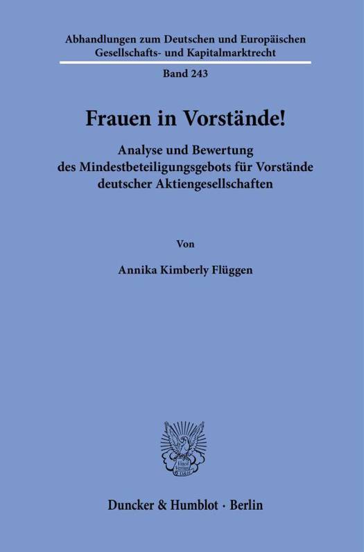 English summary: Women for Management Boards! Analysis and Evaluation of the Gender-Requirement for German Management Boards According to the new 76 sec. 3a of the German Stock Corporation Act (Aktiengesetz), certain companies must have at least one woman and one man as members of their management board. Appointments in violation of this requirement are null and void. The author establishes guidelines to cope with this new regulation in practice and evaluates the new gender-requirement, finding it to be both unconstitutional and contrary to EU law. German description: Bei bestimmten Aktiengesellschaften mussen seit 01.08.2022 mindestens eine Frau und ein Mann Mitglied des Vorstands sein. Eine hiergegen verstossende Bestellung ist nichtig ( 76 Abs. 3a AktG). Die Autorin hat diese Regelung einer eingehenden Analyse unterzogen, um einen auch fur die Rechtspraxis nutzbaren Leitfaden zu erstellen und die vielgestaltigen in praxi moglichen Fallkonstellationen einer rechtlichen Losung zuzufuhren. Die Autorin untersucht die Regelung dabei nicht nur aus Sicht der unmittelbar betroffenen Aktiengesellschaften, sondern geht auch auf die Rechte und Pflichten all ihrer Organe sowie der Vorstandskandidat*innen in diesem Zusammenhang ein. Im Rahmen der abschliessenden Bewertung kommt sie zu dem Ergebnis, dass die Regelung nicht nur handwerkliche Mangel in Form einer Vielzahl vom Gesetzgeber offengelassener und damit der Rechtsanwendung uberantworteter Rechtsfragen aufweist, sondern auch verfassungs- und europarechtswidrig ist.
