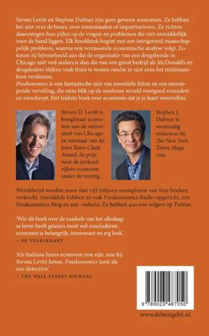 Wat is gevaarlijker: een pistool of een zwembad? Wat hebben sumoworstelaars en schoolmeesters gemeen? En waarom wonen drugsdealers bij hun moeder? Het zijn vragen die je niet gauw van een econoom zou verwachten. Maar Steven Levitt is geen typische econoom. In Freakonomics onderzoekt hij met co-auteur Stephen Dubner de verborgen kant van de dingen om ons heen. De geheimen van de Klu Klux Klan, bijvoorbeeld. Of de waarheid over vastgoedmakelaars. En, stelt hij, heeft het dalen van de misdaadcijfers in plaats van met een goed draaiende economie niet eigenlijk alles te maken met de legalisering van abortus? Freakonomics is het leukste en verhelderendste boek over economie dat je je kunt voorstellen. Een mix van essentiële feiten en een meeslepende vertelling, die onze blik op de moderne wereld voorgoed verandert en verscherpt.