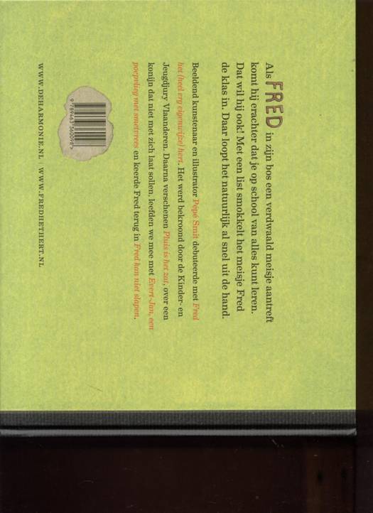 Sinds Fred het (heel erg eigenwijze) hert voor het eerst het licht zag in het gelijknamige debuut van Pépé Smit, is hij hard op weg om zijn plaats te veroveren tussen Kikker en de kleine mol die wil weten wie er op zijn kop gepoept heeft. Fred weet ook wat hij wil. In zijn eerste prentenboek waren dat handen die in zijn tweede boek, Fred kan niet slapen, goed van pas kwamen. En nu wil Fred ook nog eens naar school! Als hij in zijn bos een verdwaald meisje aantreft, komt Fred erachter dat je op een school van alles kunt leren. Dat wil hij ook! Met een list smokkelt het meisje Fred de klas in. Daar loopt het natuurlijk al snel uit de hand.