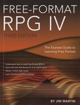 Focusing strictly on teaching free-format RPG programming methods, this book will help programmers wishing to upgrade their skills This how-to guide offers a concise and thorough introduction to the increased productivity, better readability, and easier program maintenance that comes with the free-format style of programming in RPG IV. Although free-format information is available in IBM manuals, it is not separated from everything else, requiring hours of tedious research to track down the information needed. This book provides everything you need to know to write RPG IV in the free-format style. Author Jim Martin not only teaches rules and syntax, but also explains how this modern style of coding has the potential to improve overall programmer productivity--from initial development through maintenance. He methodically covers the many style issues, such as named indicators and built-in functions, and addresses topics including input and output, program flow, data manipulation, math operations, prototyping, and APIs. This third edition is updated to V7.1 of the IBM i operating system on IBM Power machines. An added chapter explains the new free-format H, F, D, and P specifications introduced by IBM in Technology Refresh 7, and programming examples throughout the book are updated to reflect the new specifications.